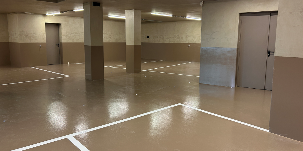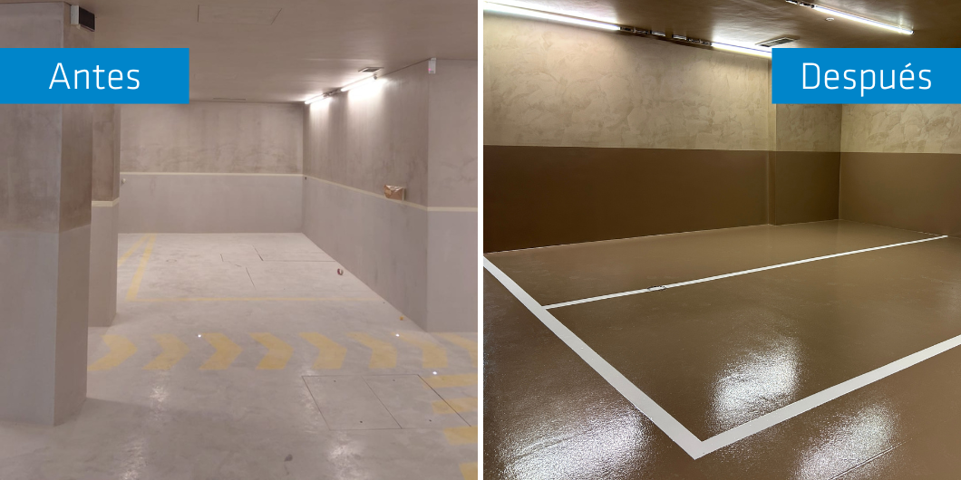 Más allá del aspecto visual, el cliente necesitaba un sistema que ofreciera durabilidad, buen mantenimiento y resistencia a la abrasión y a los productos químicos. El aparcamiento debía soportar un movimiento constante de vehículos sin mostrar signos de deterioro y mantener su aspecto cuidado durante años, por lo que la elección de la solución adecuada para el parking era clave para garantizar un valor a largo plazo.